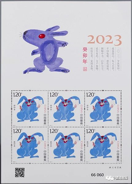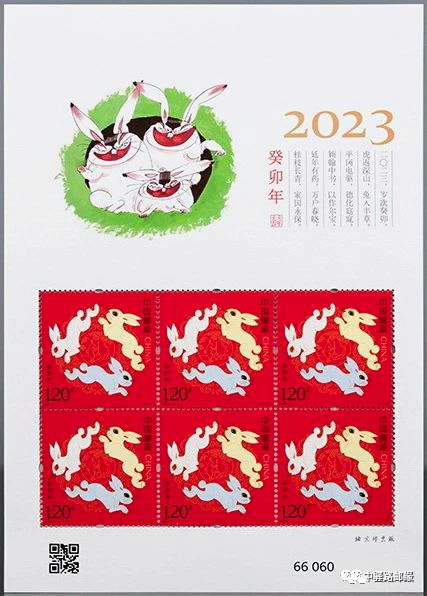 注:同时发行《癸卯年》邮票版式三(整张枚数:2套4枚;整张规格:120毫米×160 毫米;对联作者:常江)。计划发行数量:530万版。用于赠送给预订 2023年全年纪特邮票的预订户。