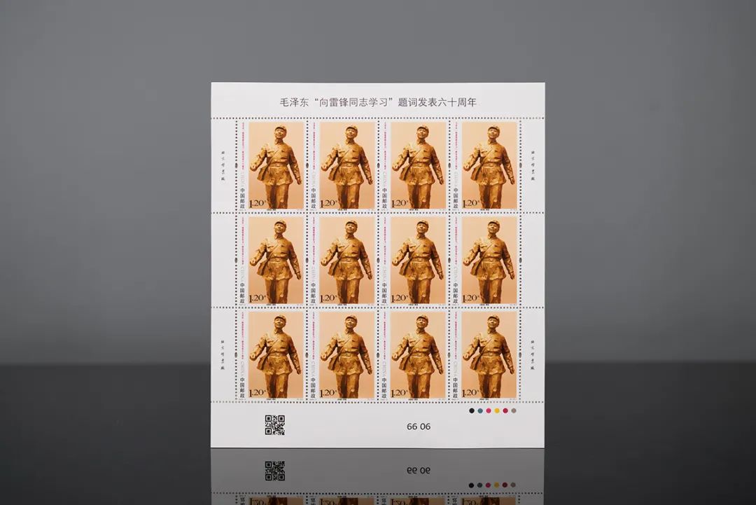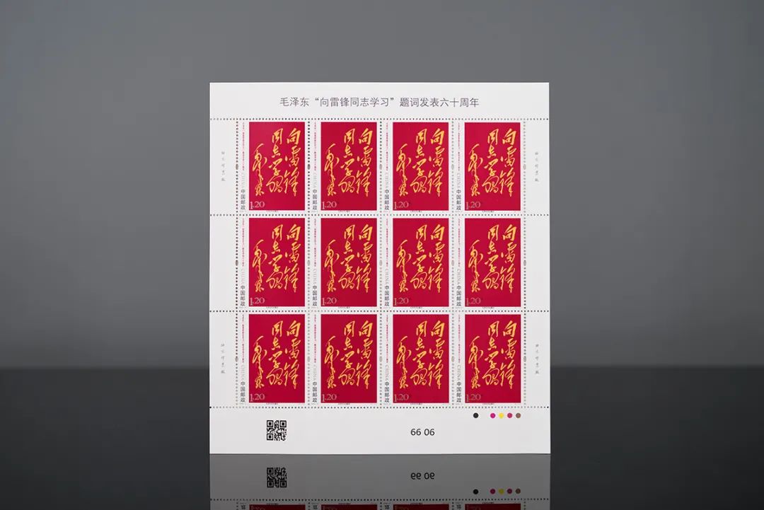 中国邮政定于2023年3月5日发行《毛泽东“向雷锋同志学习”题词发表六十周年》纪念邮票一套2枚,邮票图案名称分别为毛泽东同志题词、《雷锋》雕塑。全套邮票面值2.40元。邮票计划发行数量为750万套。
