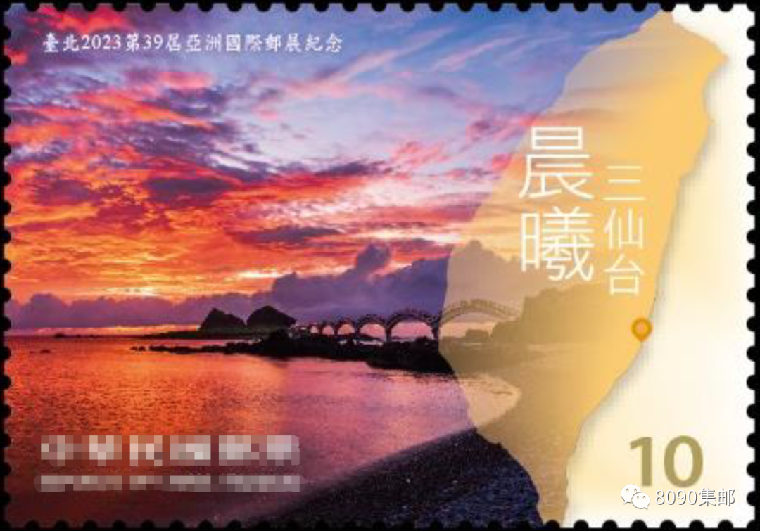 面值10元新台币的邮票图案为“晨曦三仙台”,其位于台东县成功镇,随着日出,波浪造型跨海拱桥、海岸及云彩被染上金黄色曙光,是热门观赏日出圣地。