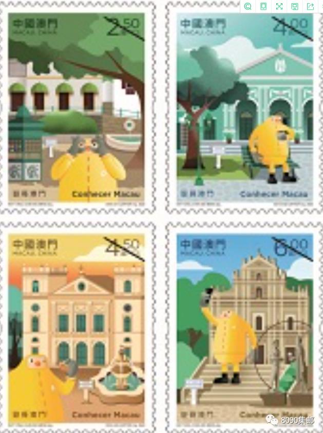 澳门《游觅澳门》邮票图稿公布,将在9月1日发行 日期:2023-07-06 来源:8090集邮 澳门邮电方面将在9月1日发行《游觅澳门》邮票一套四枚,小型张一枚,随着其发行时间临近,图稿在近期流出: 邮票展现了澳门大三巴牌坊,玫瑰堂、岗顶剧院,议事厅前地等标志性景观(不要问那个黄色的东西是什么,暂时我们也不知道) 各位小伙伴,感觉这套邮票设计如何呢