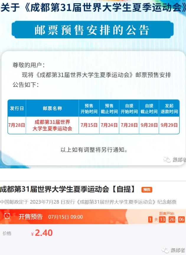 2023-13《成都第31届世界大学生运动会》邮票预售安排→