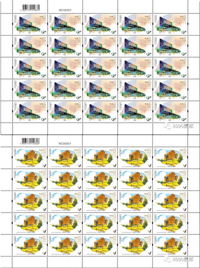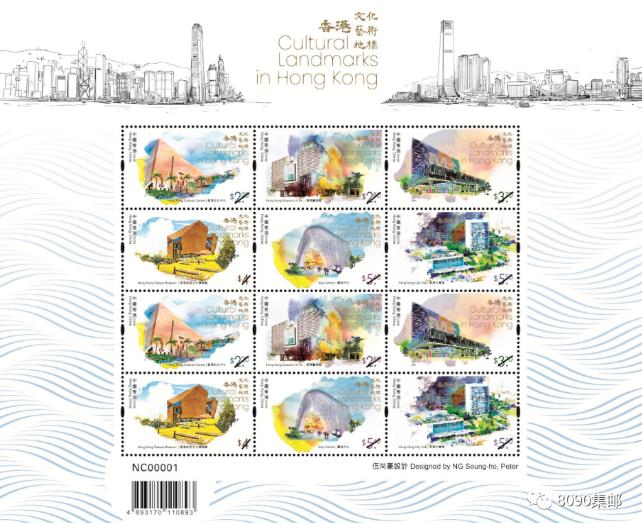 中国香港邮政将在8月22日发行“香港文化艺术地标”邮票一套六枚,小型张一枚。随着这套邮票发行时间临近,其版式全部揭晓: