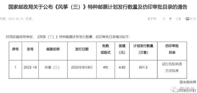 国家局公布《风筝三》《太行山》发行量通告,有邮友说风筝实物还行!