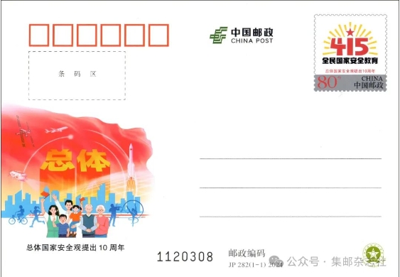 中国邮政定于2024年4月15日发行《总体国家安全观提出10周年》纪念邮资明信片一套1枚。详情如下: