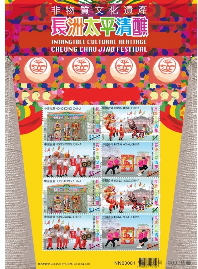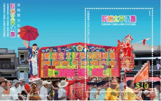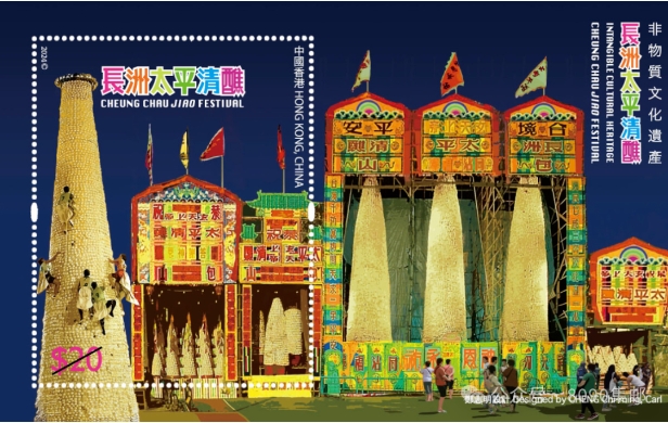 长洲太平清醮于2011年列入第三批《国家级非物质文化遗产代表性项目名录》,并于2017年成为首批列入《香港非物质文化遗产代表作名录》的项目。长洲太平清醮活动已传承了百多年,于每年农历四月初五至初九举行。长洲居民每年皆举办太平清醮,酬谢北帝神恩,禳灾祈福,保境平安。节庆的丰富传统内涵,岛上多彩多姿的民俗工艺及民间表演艺术,例如舞麒麟、大锣鼓、飘色等,都透过太平清醮这个传统节庆集中展现。香港邮政以「长洲太平清醮」为题发行特别邮票,宣扬这项香港非物质文化遗产,让这节庆活动和其中的民间工艺和习俗得以继续传承。
