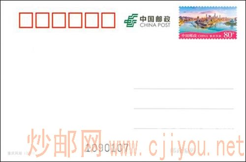 《重庆风貌》普通邮资明信片为纪念重庆建市二十周年发行。该邮资明信片上的邮票图名:重庆风貌,邮票面值80分,明信片邮票规格为35×20毫米,明信片规格是148×100毫米,由马立航设计,北京邮票厂印制。本次的普通邮资明信片采用胶印印刷,文字由杨晓栋编辑,陈安全拍摄。该普通邮资明信片售价1元,发行量109万枚。出售办法:自发行之日起,在集邮网厅、中国集邮手机客户端和中国集邮微信商城出售,售完为止。更多相关文章请参考:邮票投资交易网