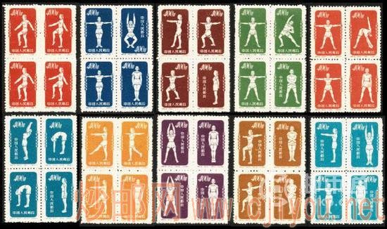 该邮票1952年6月20日发行,1955年1月10日再版。邮票内容完全为配合当时广播体操活动的推广而推出,整套邮票的图案也是根据体操动作绘制,这是中国发行的第一套体育邮票,也是中国第一套四方连邮票。
