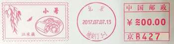 同时,北京地安门邮局还启用了“舌尖上的二十四节气:小暑 江米藕”邮资机宣传戳一枚。