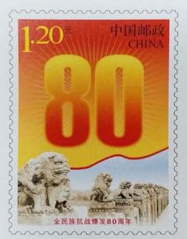 2017年7月7日是全民族抗战爆发80周年,中国邮政定于当日发行《全民族抗战爆发80周年》纪念邮资封1枚。