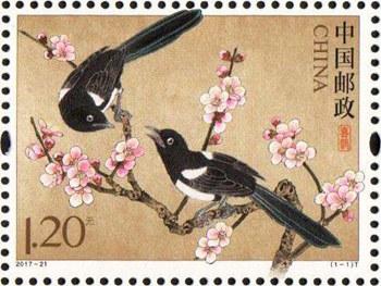 中国邮政定于2017年8月28日发行《喜鹊》特种邮票一套1枚,邮票面值为1.20元。详情如下: