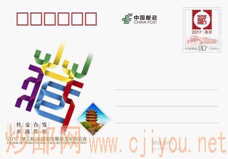 为纪念2017(第三届)中国国际集藏文化博览会的召开,传承前两届博览会的传统,中国邮政还将发行邮资明信片一套。