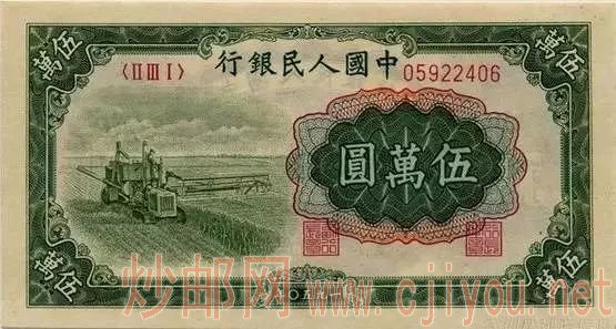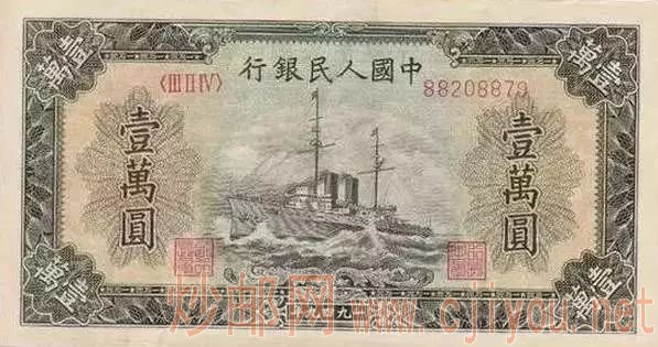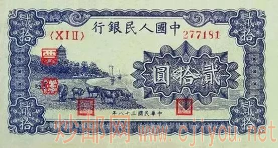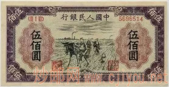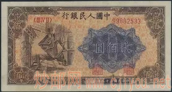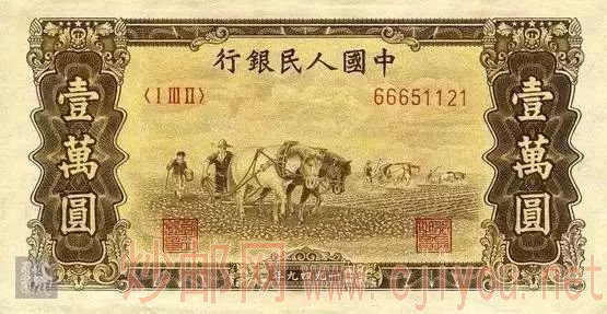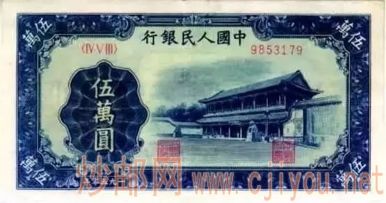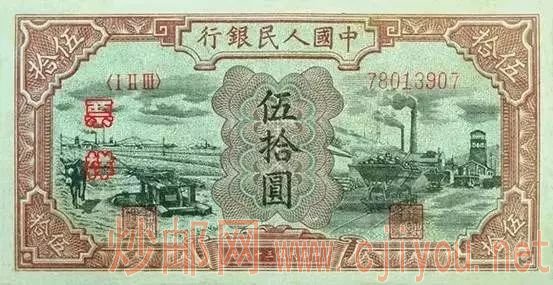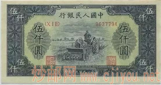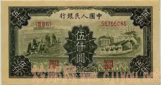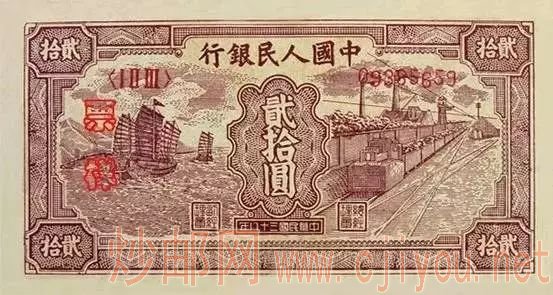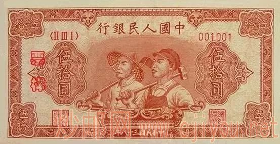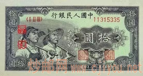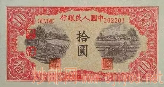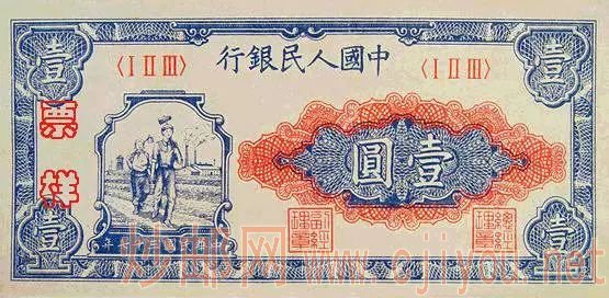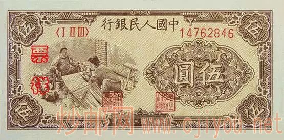 第一套人民币1948年12月1日~1953年12月陆续发行。只有纸币,共有12种面值,57种图案,62种版别。第一套人民币于1955年5月15日起停止流通。