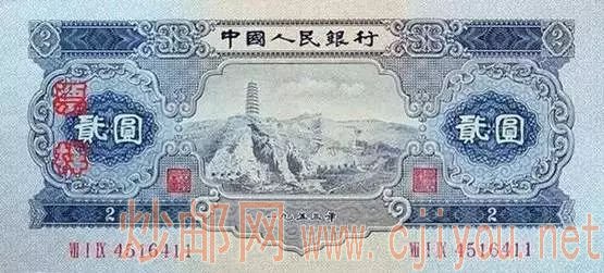 第二套人民币1955年3月1日~1962年4月20日陆续发行。纸币共有11种面值,11种图案,13种版别;硬币3种面值,3种图案,3种版别。由于大面额钞票技术要求很高,在当时情况下3、5、10元由苏联代印,该三种券种于1964年5月15日起停止流通,其余券种于1998年12月31日起停止流通,其中纸分币于2007年4月1日起停止流通。