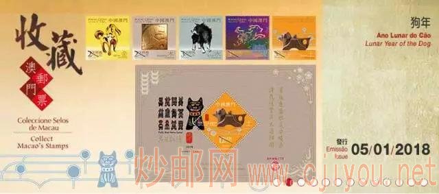 澳门邮电局还在官网上公布了2018年生肖邮票的图案,《狗年》生肖邮票将于2018年1月5日发行,全套5枚邮票一枚小型张。面值共计27.50圆。