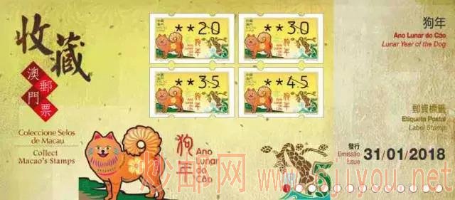 《狗年》自动化邮票将于2018年1月31日发行。邮局出售套票全套4枚,面值分别为2圆、3圆、3.5圆和4.5圆。