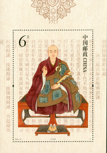 中国邮政定于2016年9月4日发行《玄奘》特种邮票1套2枚,小型张1枚。详情如下: