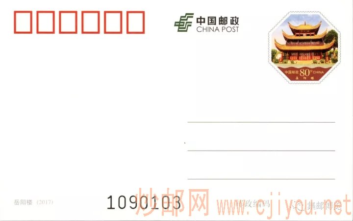 中国邮政定于2017年11月9日发行《岳阳楼》普通邮资明信片1套1枚。