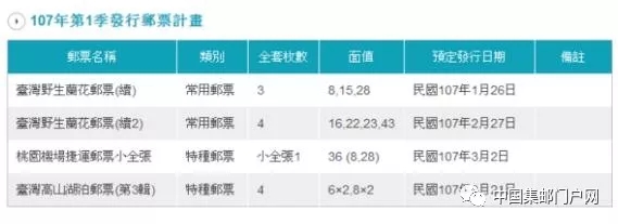 台湾省2018年第一季度邮票发行计划公布