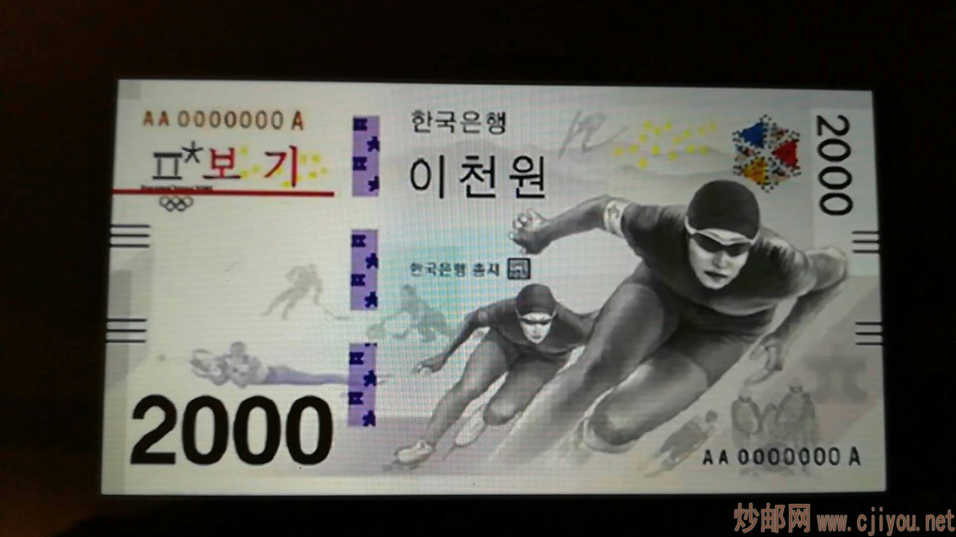 集邮门户网据环球网报道称,韩国曾为各种盛事制作过纪念币,但发行纪念钞尚属首次。纪念钞正面有速度滑冰、冰球、冰壶、冬季两项、有舵雪橇、跳台滑雪和无舵雪橇等7种冬奥会比赛项目的图案,背面以朝鲜王朝著名画家金弘道的作品《松下猛虎图》为题材印有老虎和松树。下届奥运会将在北京举办。