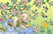 邮票小型张以灵犬彩釉瓷塑为主题,背景配以优雅脱俗的杏花彩釉瓷塑,祝愿来年花开富贵、幸福美满。
