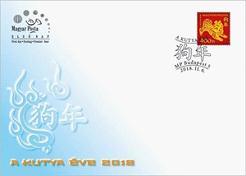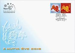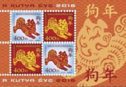 匈牙利邮政于2月6日发行2018年生肖邮票小全张,邮票图案为剪纸的狗。两枚邮票图案一样,底色不同。这将是匈牙利邮政今年的首套邮票。