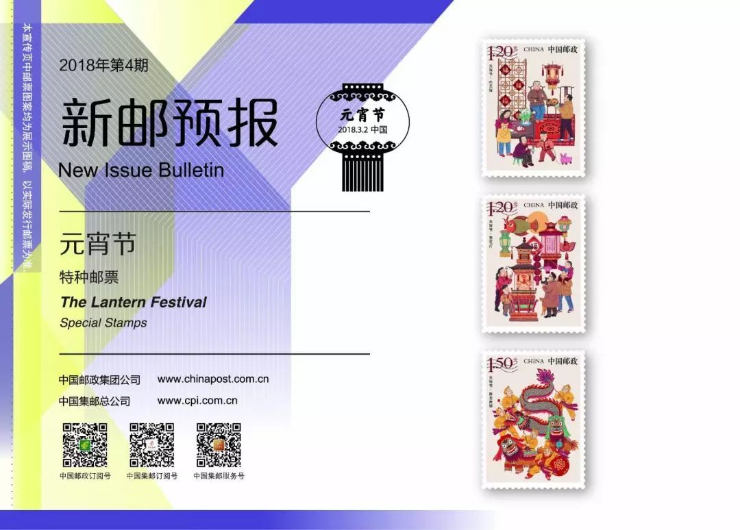 中国邮政定于2018年3月2日发行《元宵节》特种邮票1套3枚。全套邮票面值为3.90元。