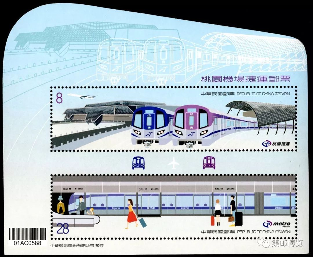 3月2日,发行《桃园机场捷运》邮票小全张1枚,内含2张邮票面值分别为: 8元、28元。