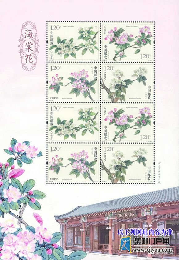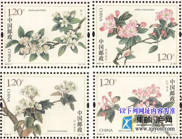 中国邮政定于2018年3月25日发行《海棠花》特种邮票1套4枚。详情如下: