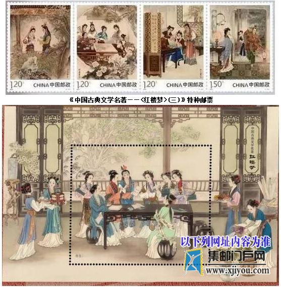 中国邮政定于2018年4月22日发行《中国古典文学名著-〈红楼梦〉(三)》特种邮票1套4枚,小型张1枚。详情如下: