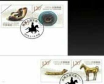 中国旅游日安排发行《丝绸之路(一)》特种邮票一套四枚。该系列邮票拟以陆上丝绸之路为中心,以陕西为起点,以丝路西拓、东播、南下、北上为主线,重点以方位展开邮票系列设计。第一组以起点汉、唐时期的文物为主,分别选取: