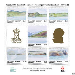 今年4月16日是丹麦女王玛格丽特二世诞生78周年纪念日,丹麦属地格陵兰岛于当日发行1套7枚以女王水彩画作品为主图的邮票以示庆祝,同时面世的还有一种包含全套邮票的小版张(图1)。这是丹麦女王画作首次登上邮票,也是世界第一次以君主画作为主图的大套邮票。