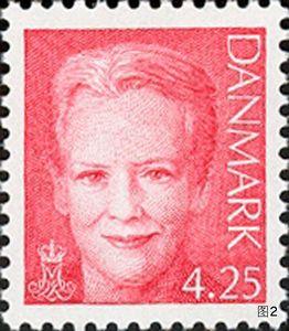 玛格丽特二世(图2为2003年丹麦邮票)从20世纪70年代初起就热心于绘画艺术创作,20世纪70年代中期她选定水彩画为主要的创作手法,并于1988年举办了首次个人画展。这次在邮票上亮相的7幅水彩画作品,选自格陵兰文化中心展出的女王画作,是女王多次到访格陵兰岛时对乘船所见到的当地海岸景观的描绘,展现了格陵兰岛的旖旎风光。