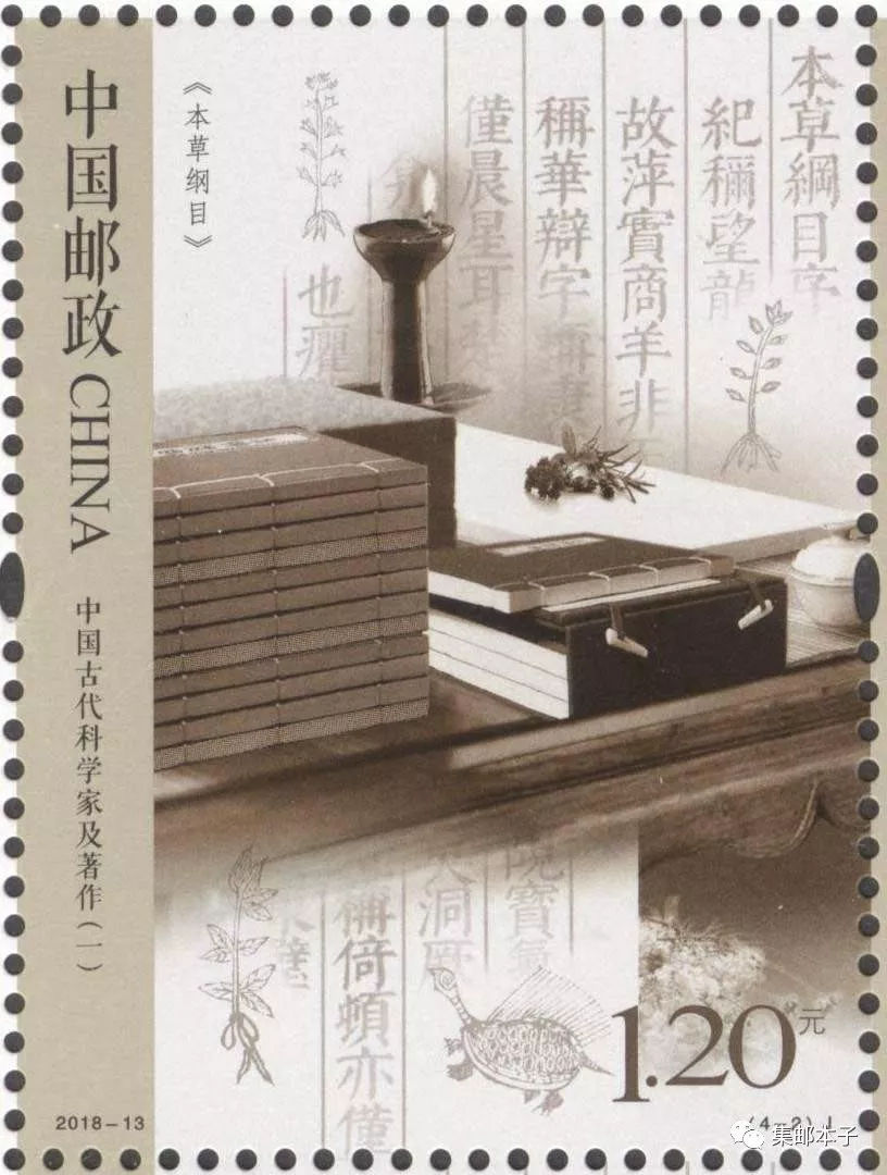 中国邮政定于2018年5月26日发行《中国古代科学家及著作(一)》纪念邮票1套4枚,邮票图案名称分别为:李时珍、《本草纲目》、宋应星、《天工开物》,全套邮票面值4.80元。