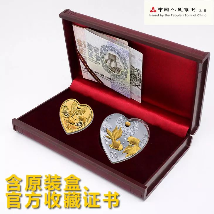 也许只是巧合,央行在5.20即将来临之际,发行了2018吉祥文化系列的第三组纪念币:采用心形设计的“珠联璧合”金银币。