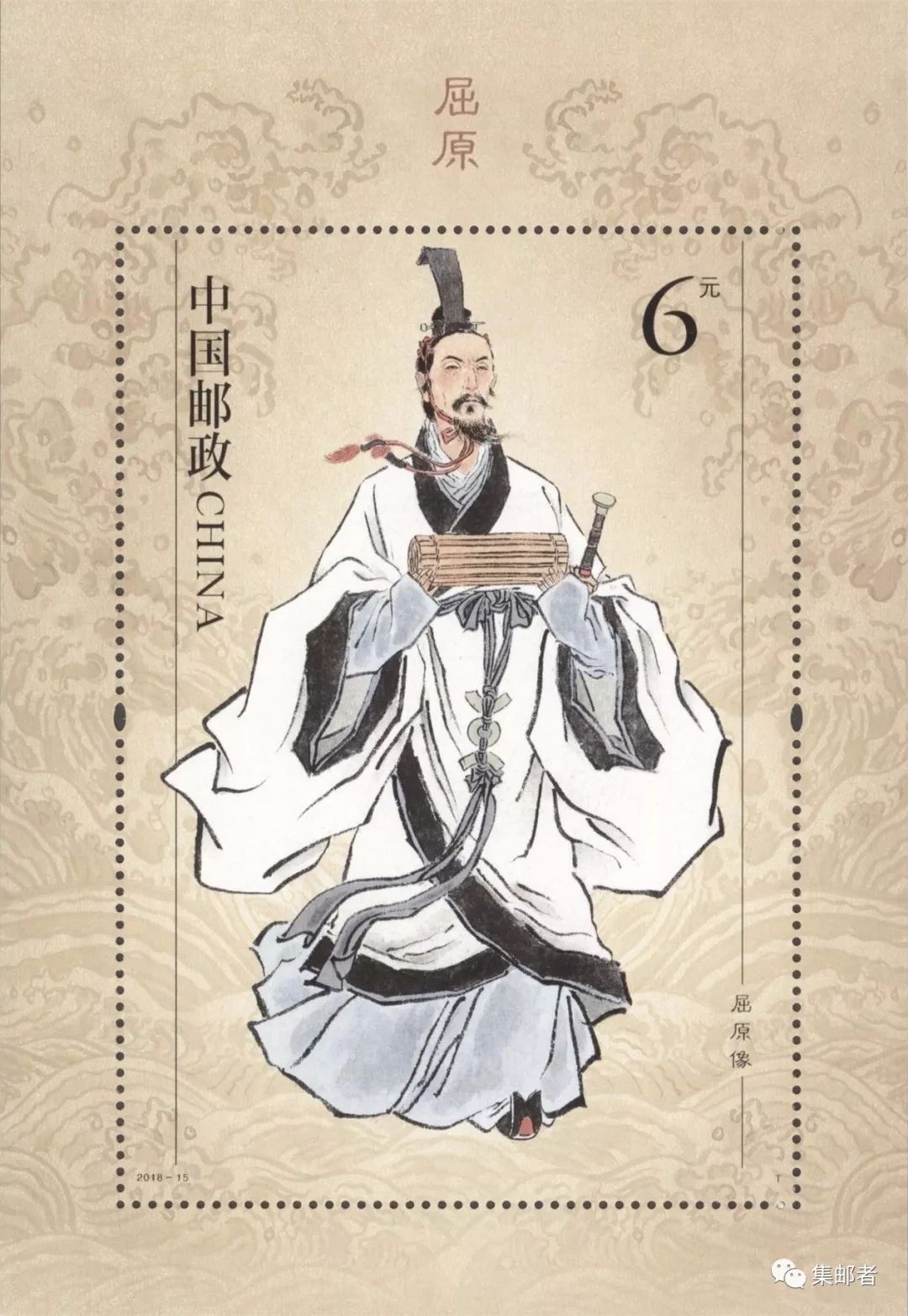 集邮者讯,中国邮政定于2018年6月18日发行志号:2018-15《屈原》特种邮票1套2枚,小型张1枚。详情如下: