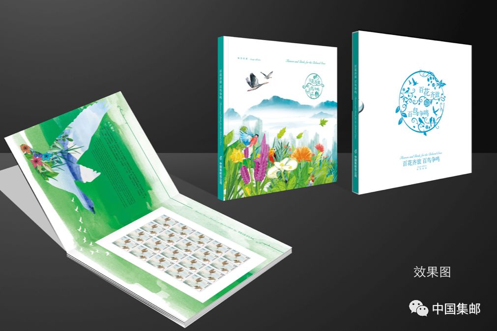 ☆3.邮册设计根据邮票主题采用美好活泼的风格,体现这轮象征美好情感的动植物邮票的特点。封套采用图形化的花鸟展现充满生机而美好精致的景象,封面采用水彩风格表现一个花香鸟语万物生长的美景,内文延续水彩风格,表达情感主题。