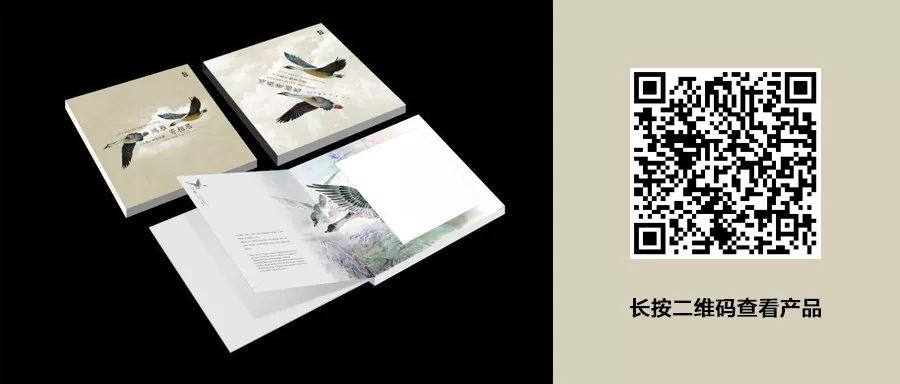 ☆3.邮册设计以晁谷先生绘画作品为内容。大雁文化册插套采用手绘的设计风格,白描笔触绘制在牛皮纸纸纹上,自然亲切,流动的山脉和流云线条,飞行的雁队,一静一动体现了大雁的家庭聚合感和忠贞不渝的爱情。封面采用淡雅细腻的水彩绘画,于插套形成对比。邮册内页采用晁谷先生的绘画作品,两只在一起的大雁象征折爱情。