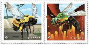 5月1日,加拿大发行了1套2枚蜜蜂邮票(见图),以小本票形式发行,小本票内含5套共10枚永远邮票,每枚邮票的实际面值为85加分。 |