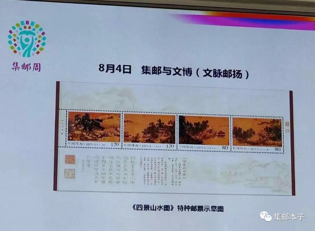 中国邮政定于2018年8月4日发行《四景山水图》特种邮票1套4枚,小全张1枚。详情如下:
