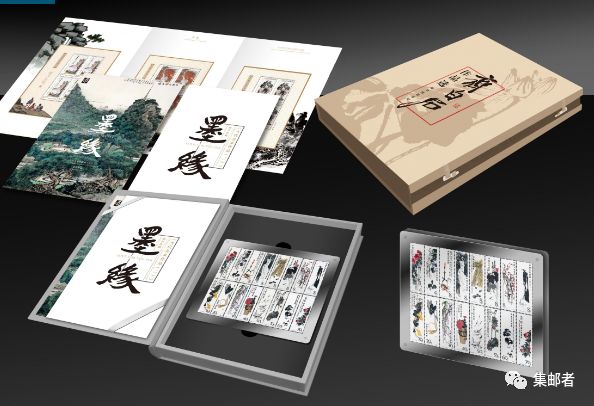 《墨缘》邮折(内含《当代美术作品选》小版,四枚版个性化票1版),彩银仿印T.44《齐白石作品选》邮票一套16枚,共20g。