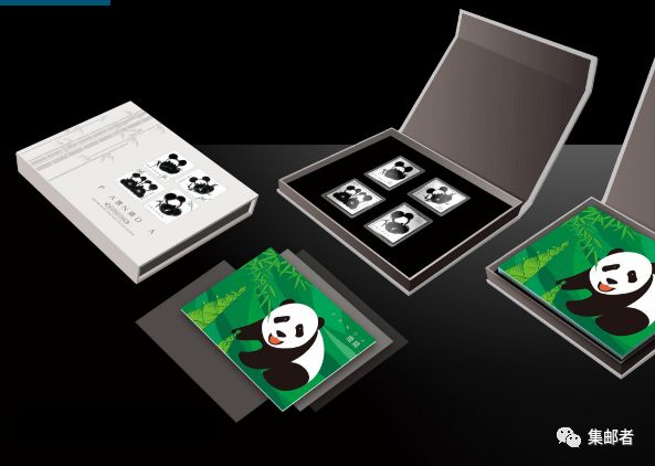 纯银仿印T.106《熊猫》套票,邮票一套四枚,每枚1g,共4g,搭配明信片1套4枚,贴《竹》主图个性化邮票。