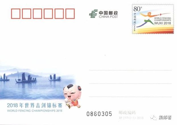 中国邮政定于2018年7月22日发行《2018年世界击剑锦标赛》纪念邮资明信片1套1枚,明信片规格165×115毫米,明信片邮票面值80分,售价1.20元。