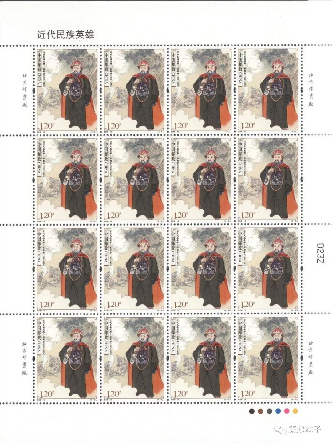另:同时发行《近代民族英雄》纪念邮票本册1本。编号:BPC-17。规格:200×200毫米。