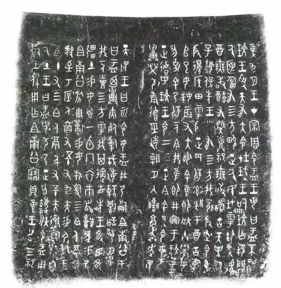 从书体风格上,8克金币的商代众人协田卜骨刻辞以线刻表现这篇卜骨刻辞典型的单刀契刻特征,笔道刚劲有力,字体瘦劲挺拔,通篇布局疏落,体现出清新高古的自然美感;150克长方形银币的西周大盂鼎铭文则体现用笔方圆兼备,端严凝重,具有很强的装饰韵味与节奏韵律,在质朴平实中显现出宏伟庄严之相;30克银币的先秦石鼓文字,则是“体象卓然,殊今异古;落落珠玉,飘飘缨组”的“小篆之祖”气象;而另一枚30克银币上的秦代泰山刻石小篆,则又以字形公正匀称,线条圆健似铁而见长。通过不同风格的篆书书体,来追索文字形成之初的生命源头,表现书法艺术诞生之初的灵性和诗意。