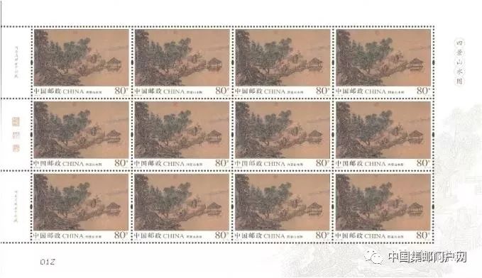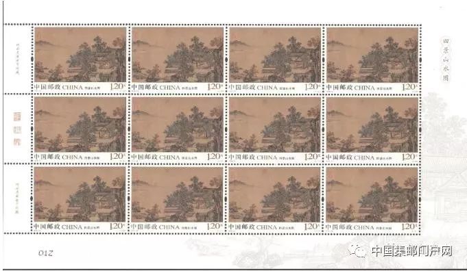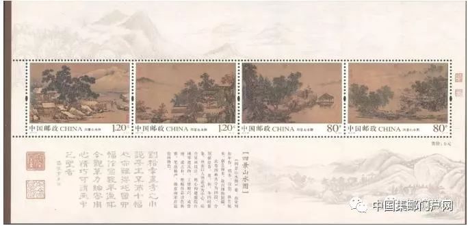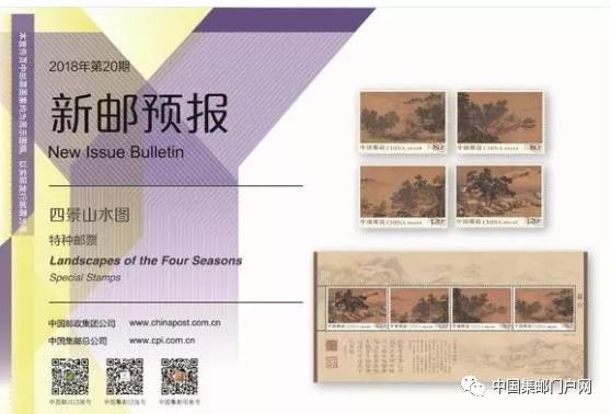 中国邮政定于2018年8月4日发行《四景山水图》特种邮票1套4枚,小全张1枚。集邮门户网讯详情如下: