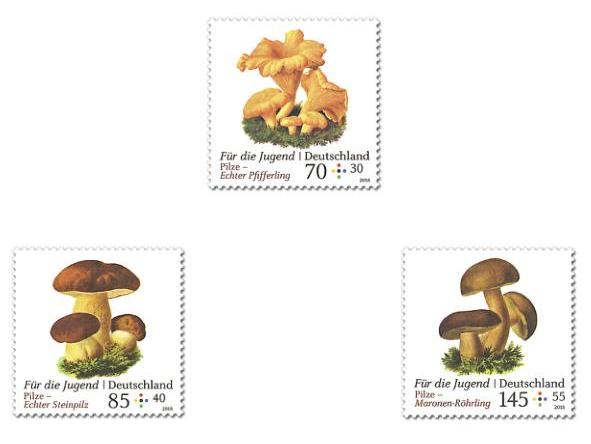 内容简要:发行日期09.08.2018价值(以欧元计)图案1:“鸡油菌”70 + 30附加费图案2:“牛肝菌”85 + 40附加费图案3:“板栗籽”145 + 55附加费设计 Sibylle Haase和Fri...
