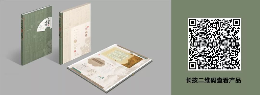 插套和封面选用浅咖色和灰绿色为主,封面以传统线装书的设计形式来表现,选取中国传统文学中的《唐诗》、《宋词》、《诗经》等名句、名诗并融合了古代文学人物、琴棋书画等图形,整合成一个具有古籍特色的图案,画面具有浓厚的古香古色特点,更好的体现了中国传统文学的博大精深。插套采用大地纸特种纸,图案采用整体热压工艺、标题烫古铜金。