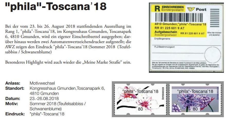奥地利电子邮票8月23日加字“phila”-Toscana’18