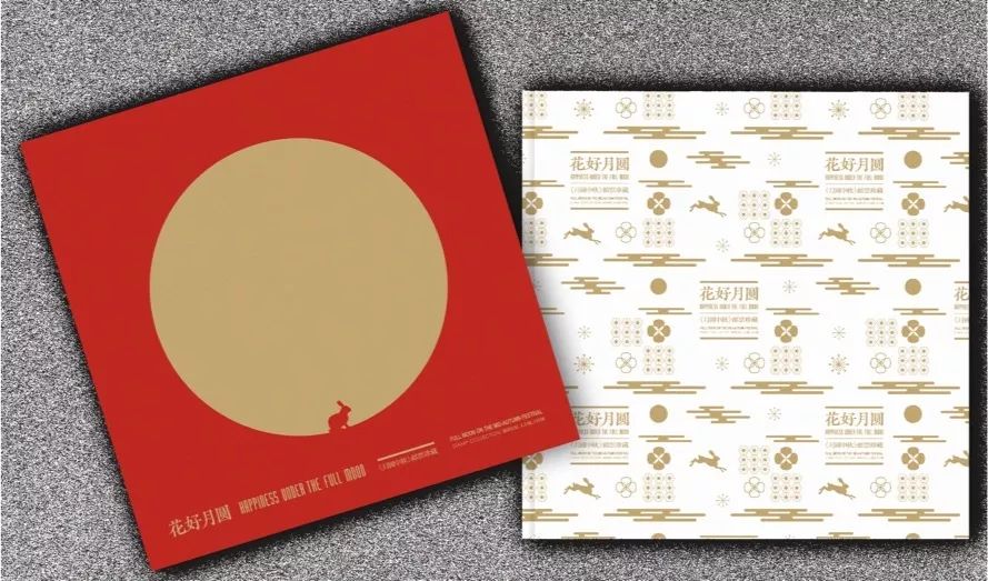 配合《月圆中秋》新邮的发行,特制作小版邮折1枚,内放月圆中秋小版和四枚版个性化邮票。