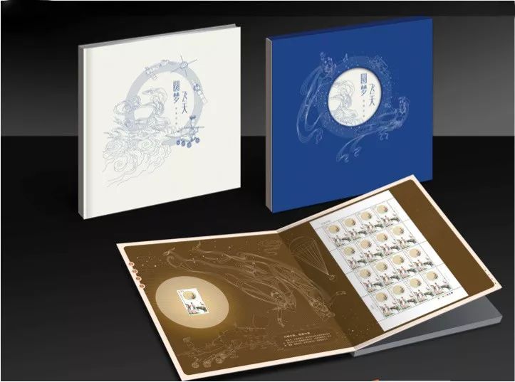 3. 产品设计古典与现代航天有机结合,相得益彰。中插套呈月亮形状镂空,飞天、星空、宇航员烫镭射银,封面为嫦娥奔月,东方红、天宫二号、嫦娥二号、玉兔号代表中国航天事业里程碑意义的成就,整体图案烫蓝金,古老的神话传说与航天梦的有机结合,表达人类对太空的探索与追梦,是一款具有中秋寄思、航天科技、飞天艺术多重概念融为一体册。